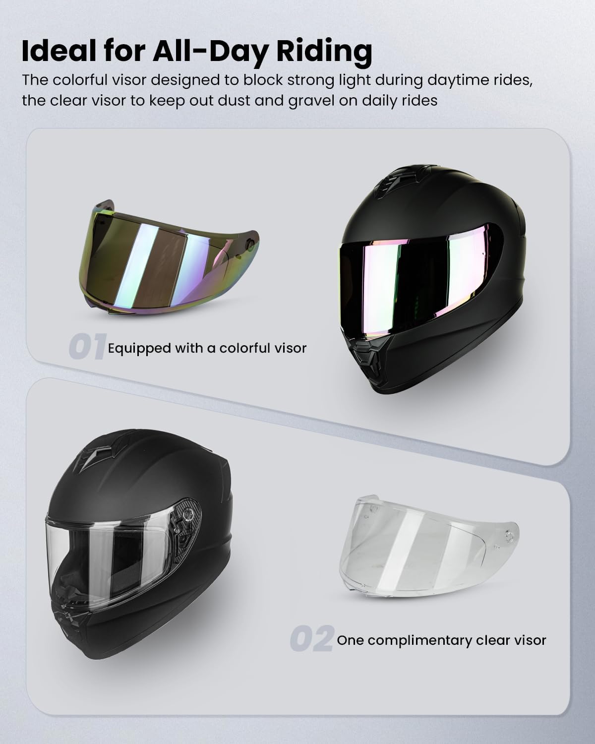 AUBOA Motorcycle Helmets for Adult Men Women, Full Face Lightweight Street Bike Racing DOT Helmet with Extra Clear Visor Model AU-T801