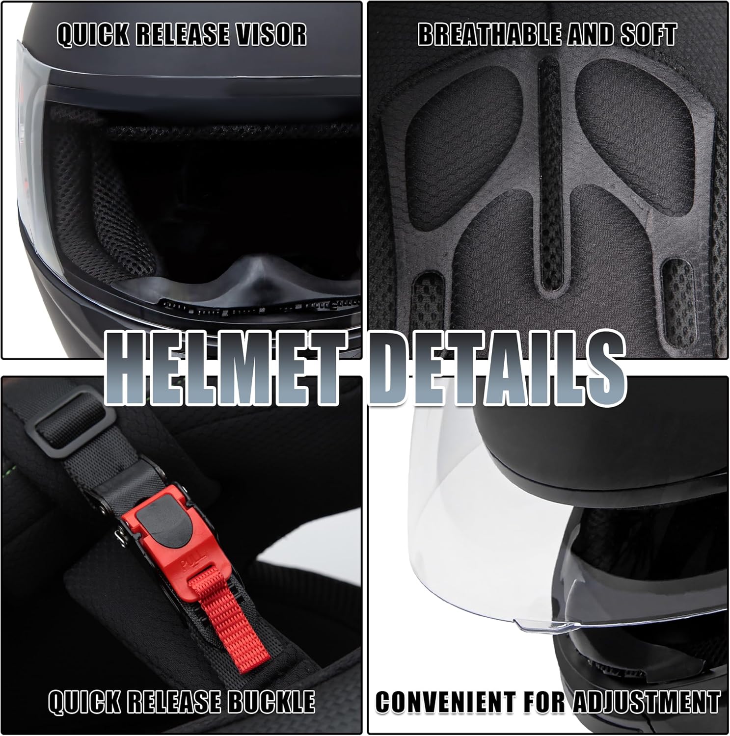Full Face Motorcycle Helmet,Helmets for Adults Motorcycle, MG611 Motorbike Racing Street Bike Helmets with Black Visor for Men Women,DOT Approved (Matte Black, L)