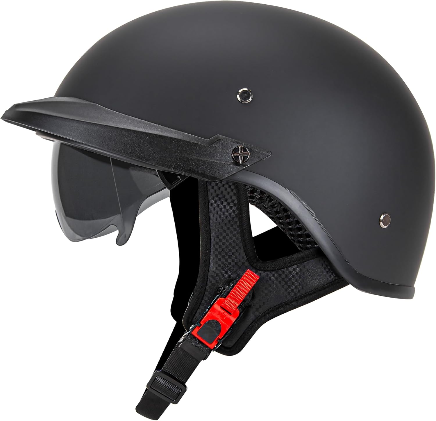 Cartman Motorcycle Open Face Helmet with Sun Visor Quick Release Buckle, Matte Black, DOT Approved