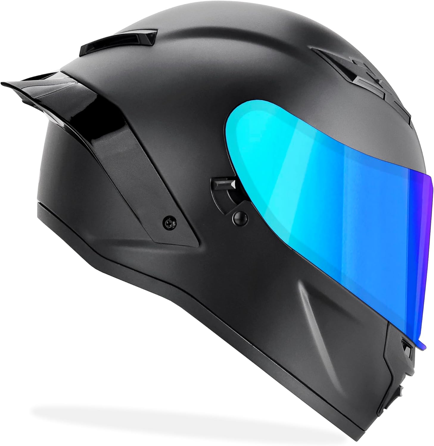 Full Face Motorcycle Helmet,Helmets for Adults Motorcycle, MG611 Motorbike Racing Street Bike Helmets with Black Visor for Men Women,DOT Approved (Matte Black, L)