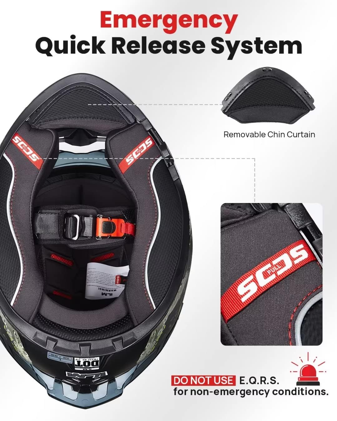 Full Face Motorcycle Helmet DOT Certified u2013 Lightweight ABS Shell, Street Bike Model with Sunshield & Clear Visor, Ventilation System, Removable Liner for Men & Women