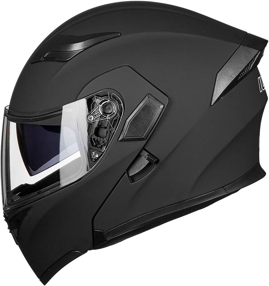 MXJ Gear Motorcycle Helmet,Motorcycle Dual Visor Flip up Modular Full Face Helmet JR-815,DOT Approved Motorbike Helmet with Black Visor for Adults Men Women(L,Matte Black )