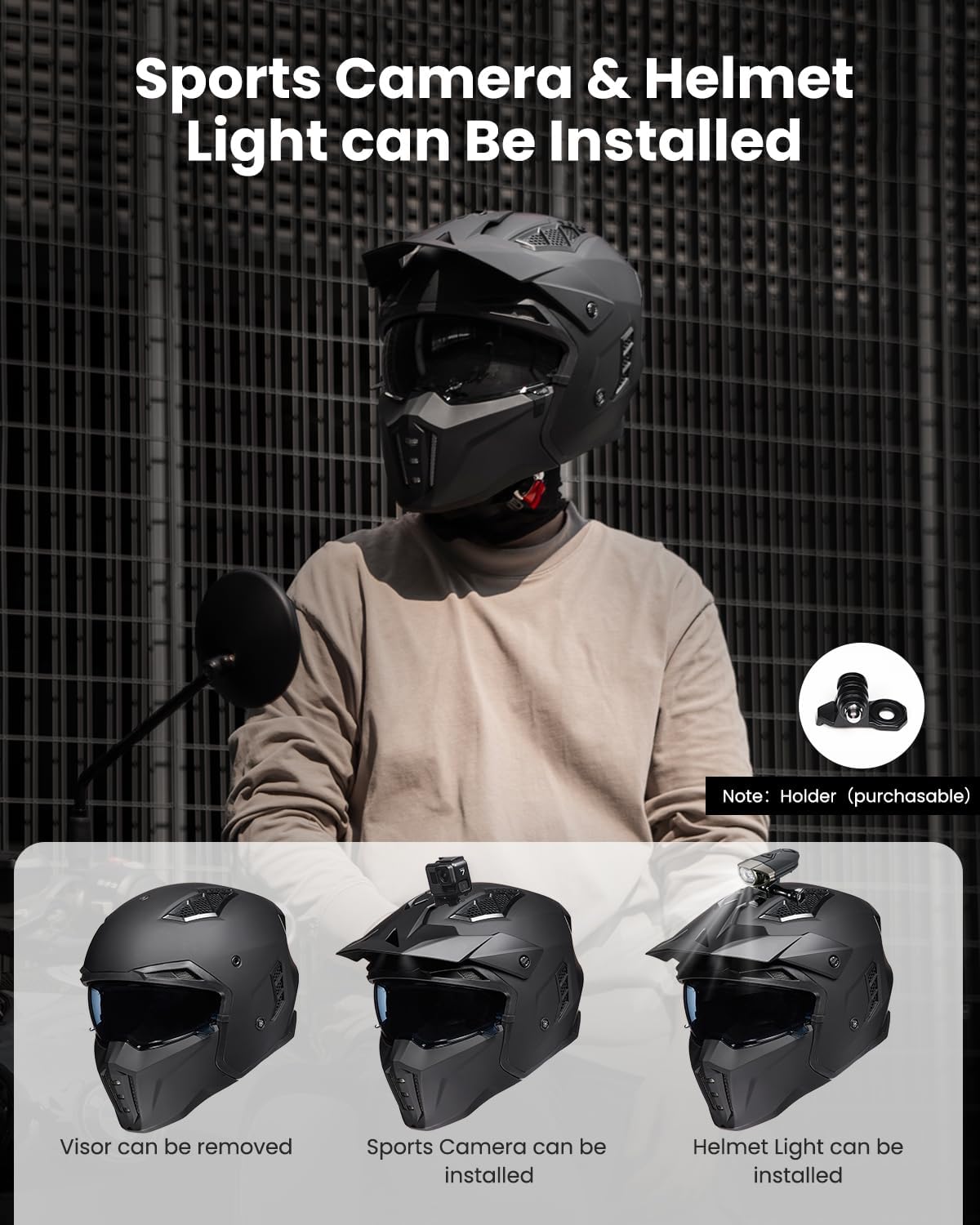 The top screw equipped with this helmet can adjust the angle of the sun visor. However, the angle of the sun visor does not affect the angle of the action camera you have equipped to your helmet. It is easy and convenient to adjust the visor.
