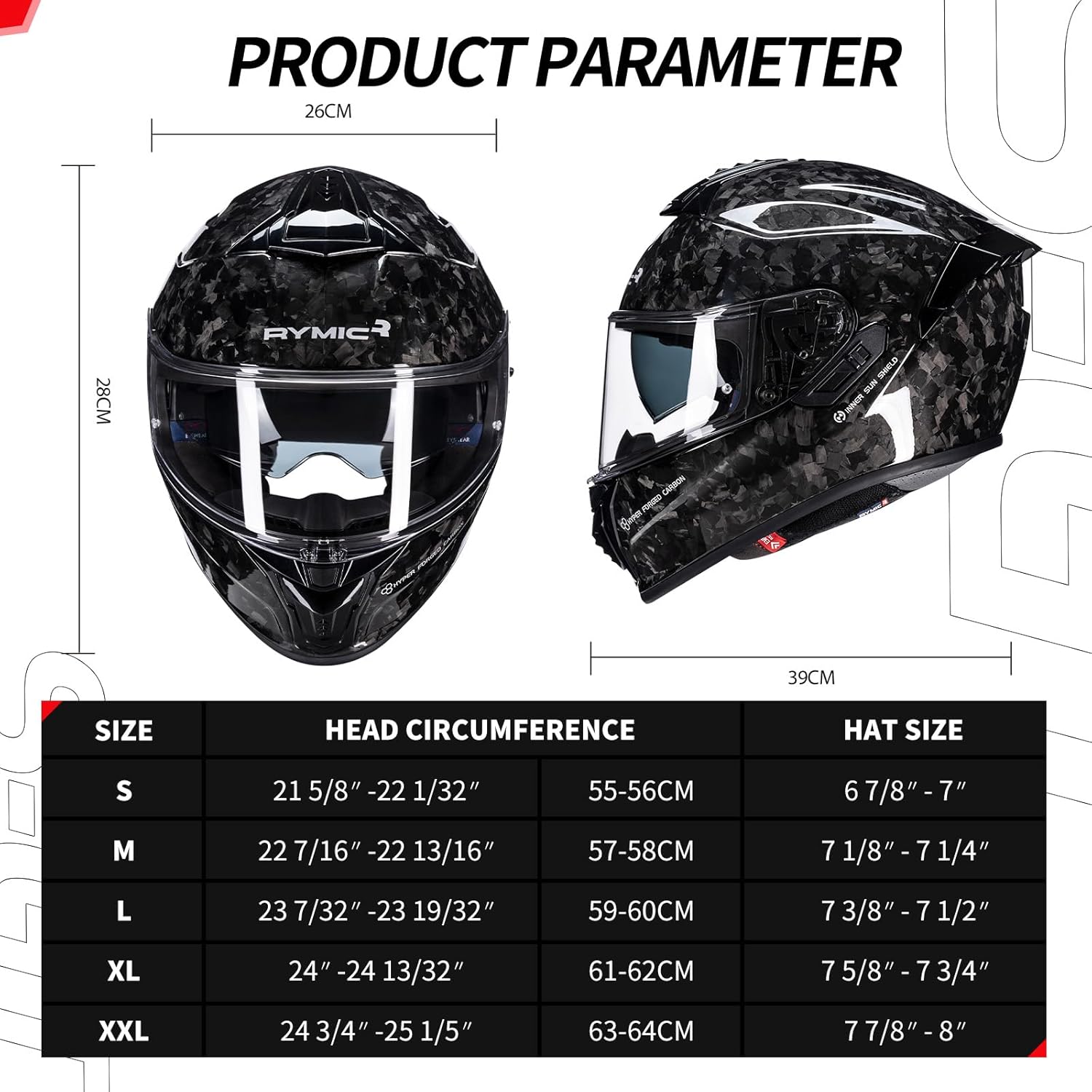 Rymic S-GT Carbon Fiber Motorcycle Helmet Full Face Racing Helmet for Adult Speaker Pockets DOT Approved