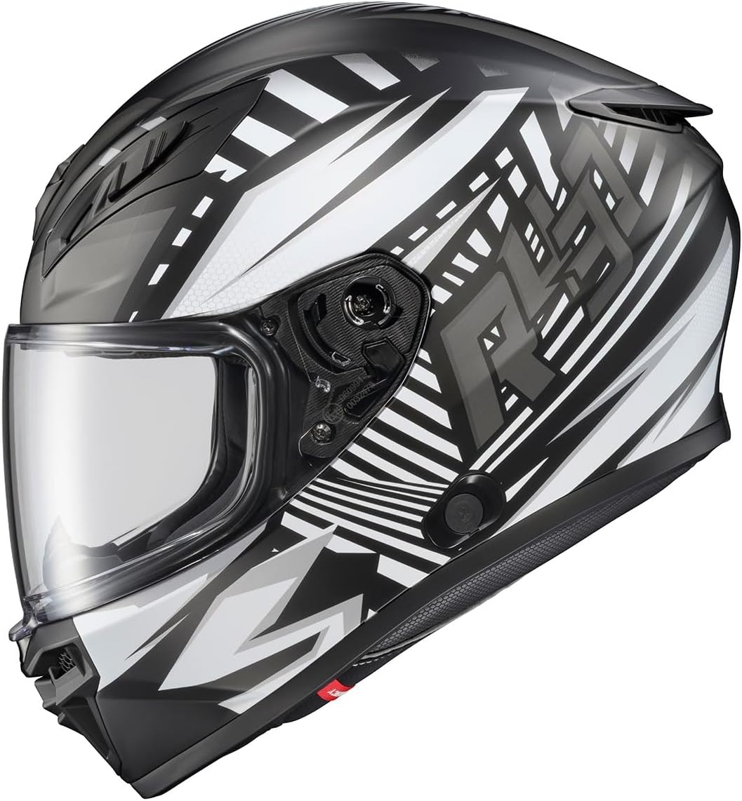 The EXO-R430 helmet continues to set a new standard for ScorpionEXO’s full-face street helmets at a very competitive price point. The advanced polycarbonate shell is more aerodynamic and smaller, resulting in an ultra-lightweight. The aero-tuned ventilation system uses large top vents and mouth vents, engineered to allow more airflow to the rider’s head while maintaining low noise levels. The EXO-R430 now features our new Elliptec shield with a latching shield locking mechanism located in the lower center of the shield. This makes the shield more secure and provides a tighter seal against the gasket. The shield can be easily removed without tools, and the EverClear No-Fog coating helps keep your vision clear in cold and damp environmental conditions. The EXO-R430 is an updated true high performance helmet at an unbeatable price. Features: CAD-refined aerodynamics. Advanced multi-layer EPS. Newly designed adjustable mouth vent provides significantly more airflow. Adjustable chin bar vent. Moisture-wicking liner fabric. KwikFit sculpted cheek pads accommodate most eyeglasses. Liner kit is removable and washable. Optical Class 1 Shield features varied thicknesses throughout the lens which enhances visual accuracy, reduces glare, and prevents distortion. Preinstalled Optically superior Class 1 Clear No-Fog shield. Anti-scratch coating provides 99% protection against harmful UV-A & UV-B rays. Large eye port design creates a superior horizontal and vertical visual field. Ellip-Tec III ratchet system features a refined mechanism design resulting in firm detents and smoother overall function. Bluetooth Ready speaker pockets specifically for the EXO-COM system (Accommodate most Bluetooth comms). EMT-friendly, emergency-release cheek pads. Integrated reflective piping (cheek pads). Includes Breath deflector and Aero skirt (chin curtain). Sizes XS-4XL (3XL-4XL DOT Only).