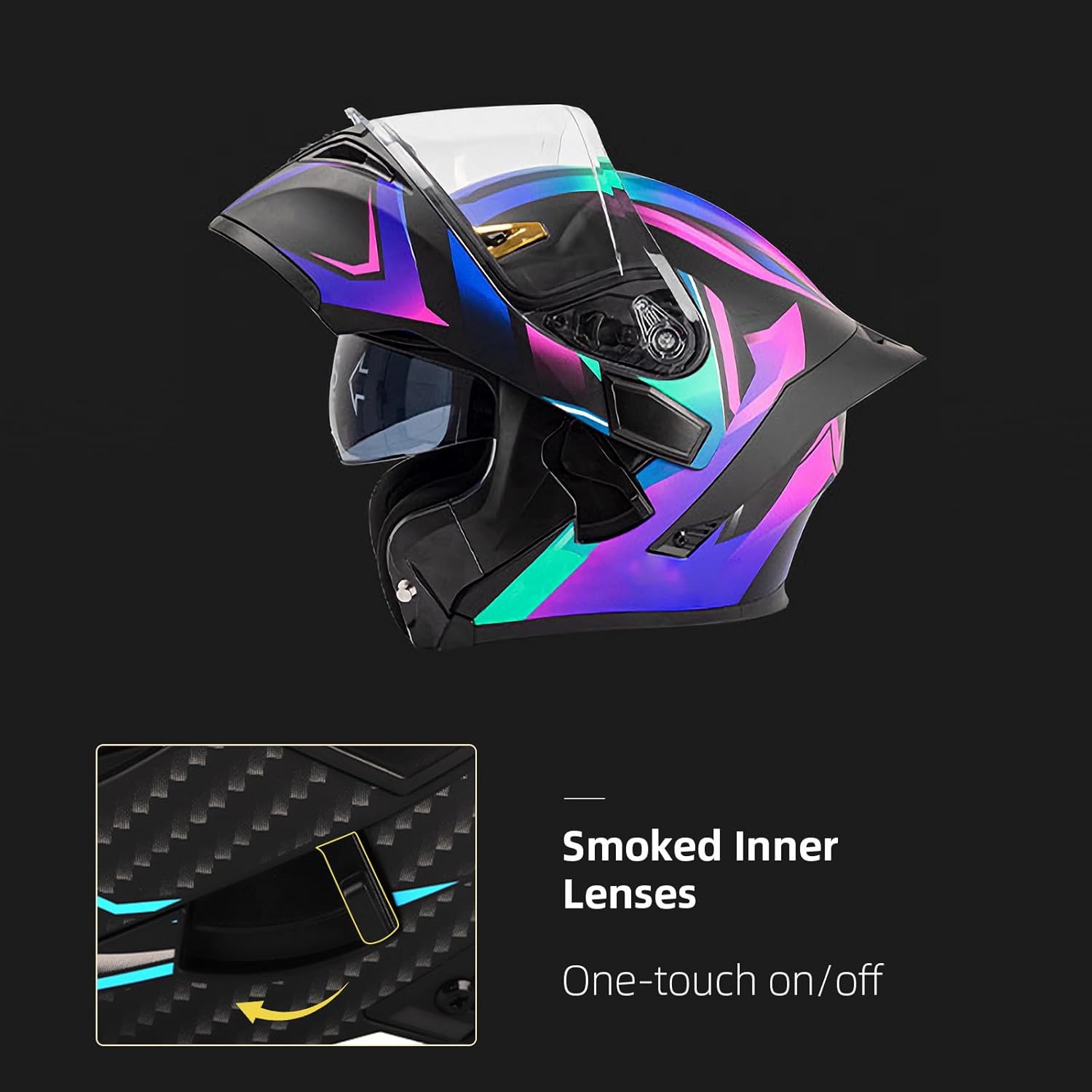 Be the first to review “Womens Motorcycle Helmet with Bluetooth – DOT Modular Motorcycle Helmets with Dual Visor, Flip Up Full Face Purple Helmet with Speaker and Mic” Cancel reply